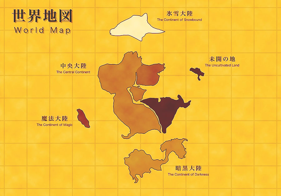 5つの大陸で構成された小さな世界。だけど、小さなケセラには大きな世界。魔法大陸・ミディーラ王国の地理研究班によって、簡易な世界地図が作られている。未発見の大陸も、あるとかないとか。未開の地は研究者は「ミニマリア」と呼び、たびたび調査に向かっている。